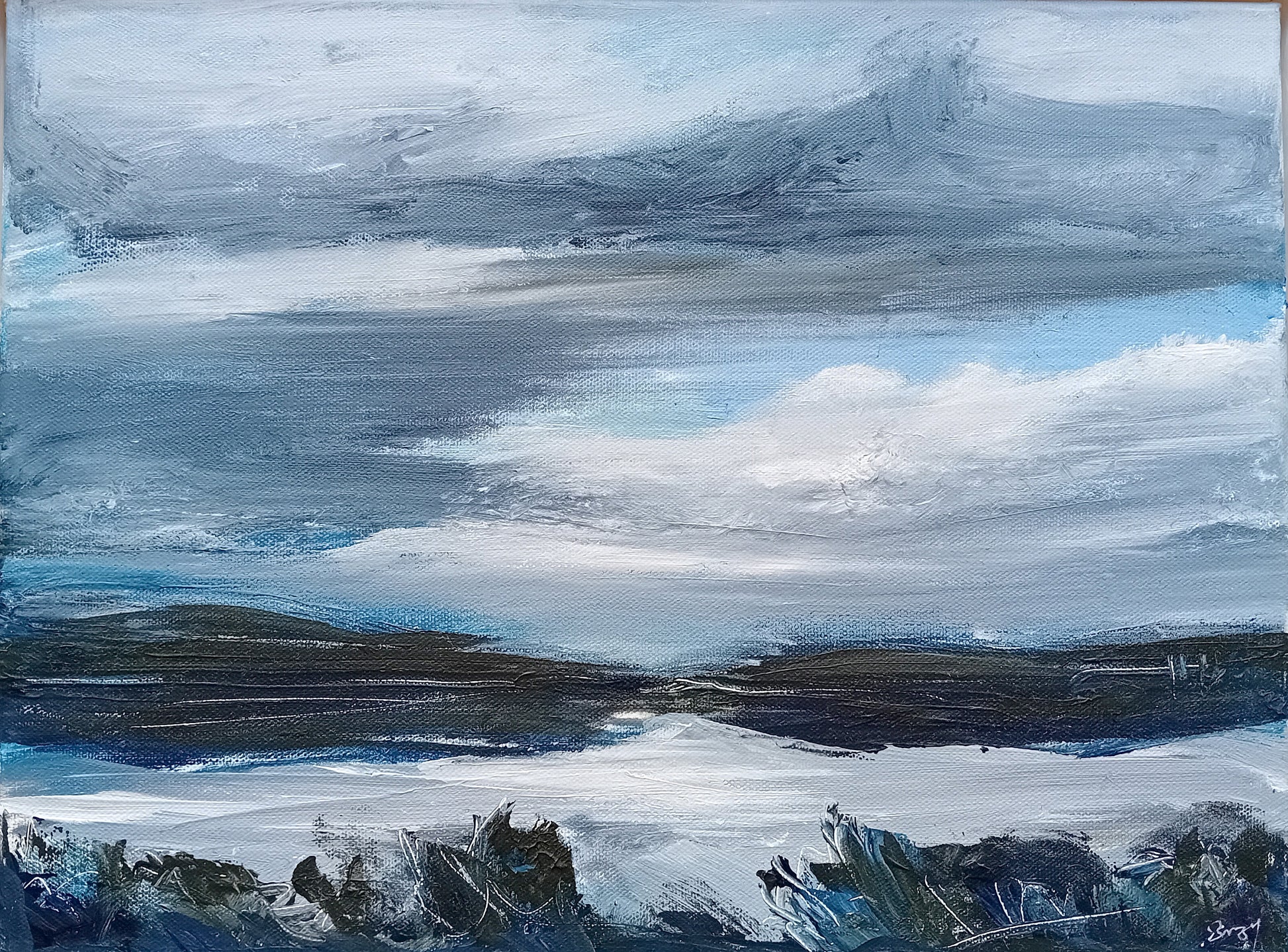 The inspiration of this piece was based on the rising mist in the sky above Bere island and how the distinction between the cloudscape and the landscape becomes blurred.